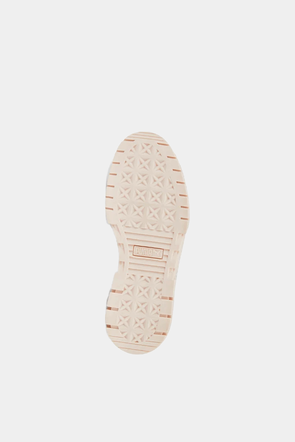 The Mayze Strap Girl Zone redefines platform sneakers with sporty-voluminous flair. Its chunky PU sole anchors a sleek leather or mesh upper (depending on the batch), enhanced with iridescent pull tabs and a bold strap across the laces. The"Island Pink" hue brings a soft pastel punch, perfect for trendsetting streetwear vibes