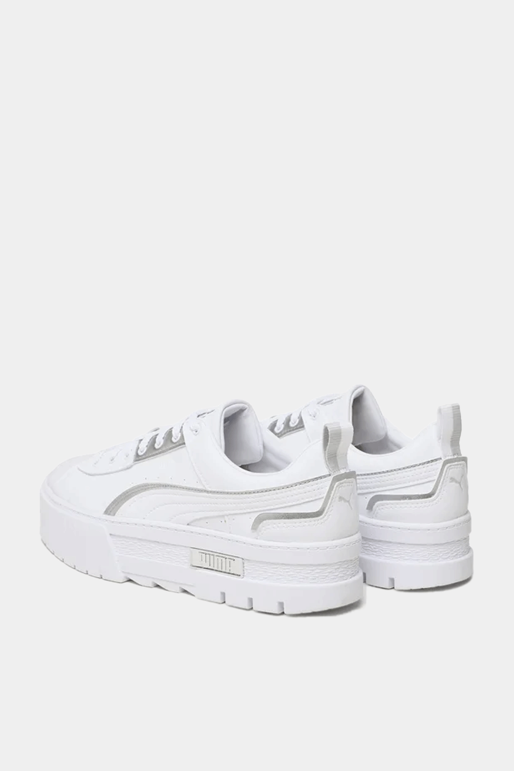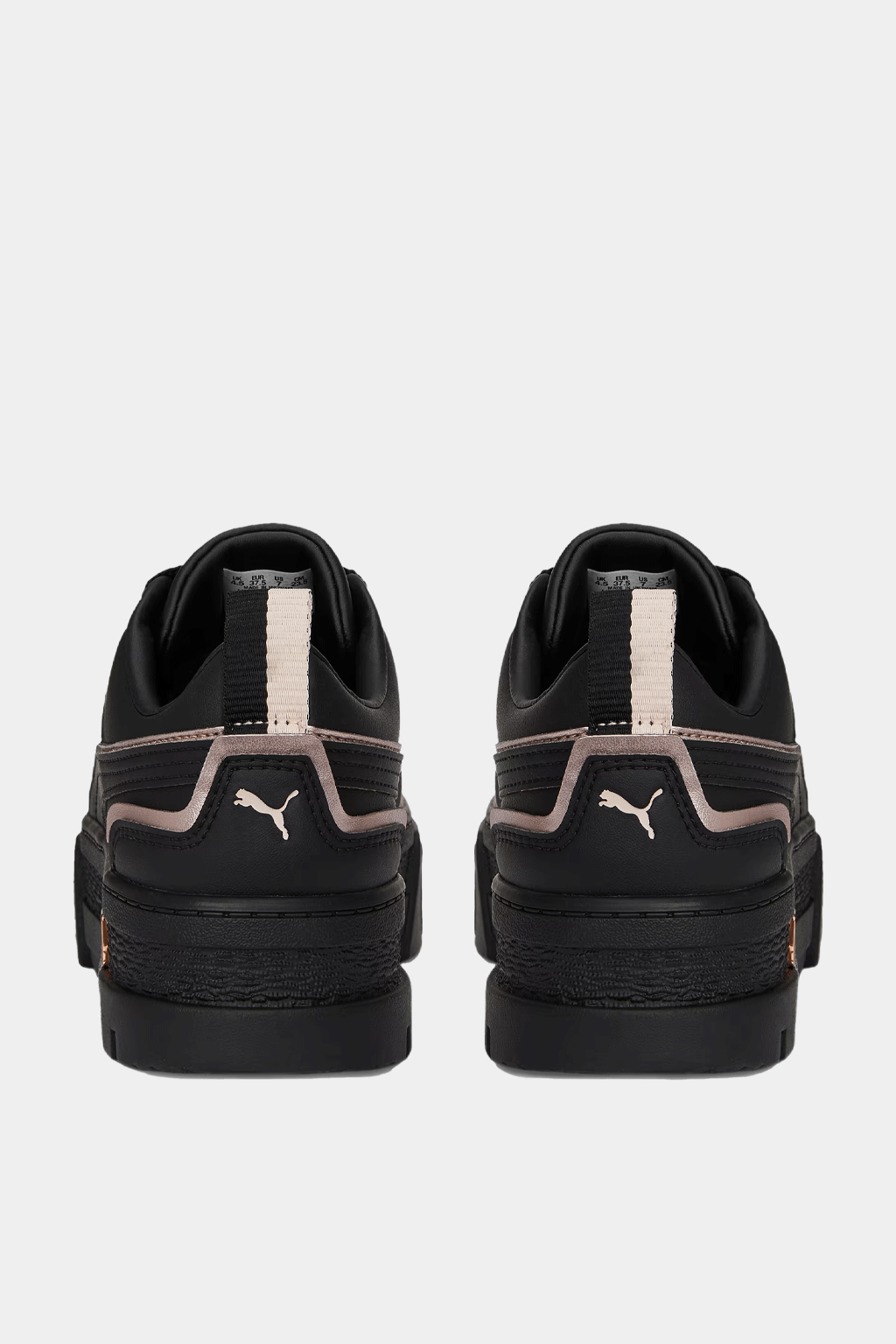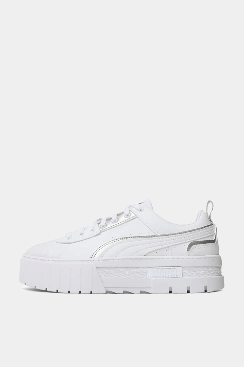 The PUMA Mayze UT Metallic WNS redefines street style with its standout stacked sole and sleek design. Featuring a synthetic upper with leather overlays and shimmering metallic accents, this sneaker brings a luxe edge to your casual wardrobe. Glossy eyelets and refined detailing add a fashionable finish, while the durable rubber midsole ensures all-day comfort and grip. Perfect for those who love to make a statement‚ every step of the way.