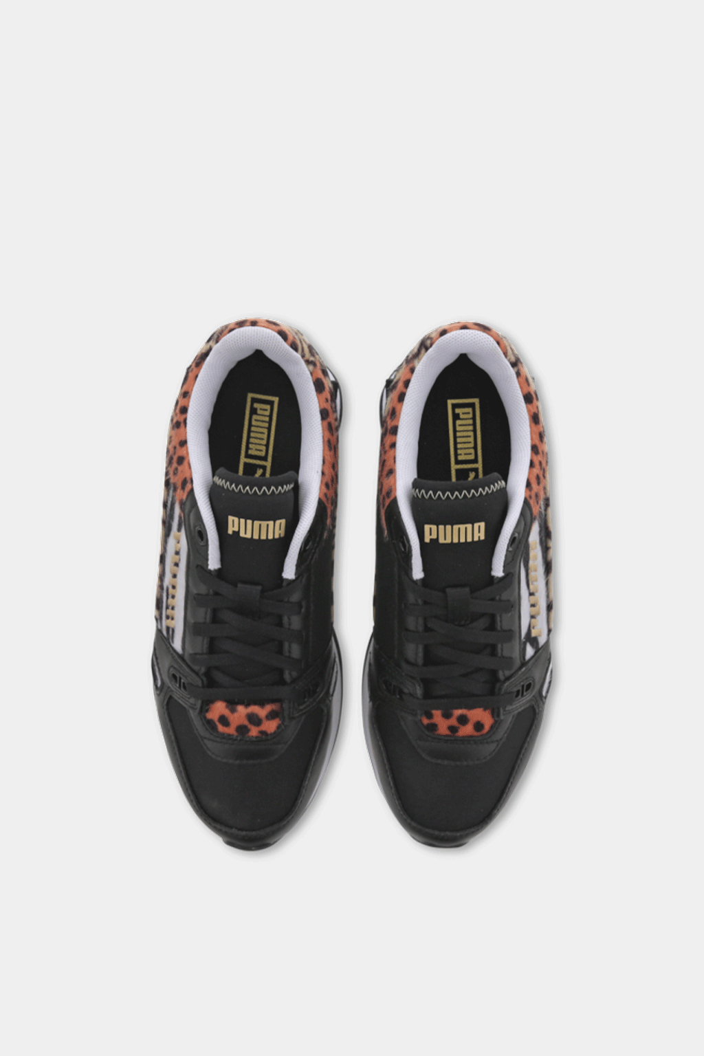 The PUMA Mile Rider W.CATS is a women's sneaker that blends retro aesthetics with modern flair. Featuring a bold design with animal print accents, it offers both style and comfort for everyday wear.