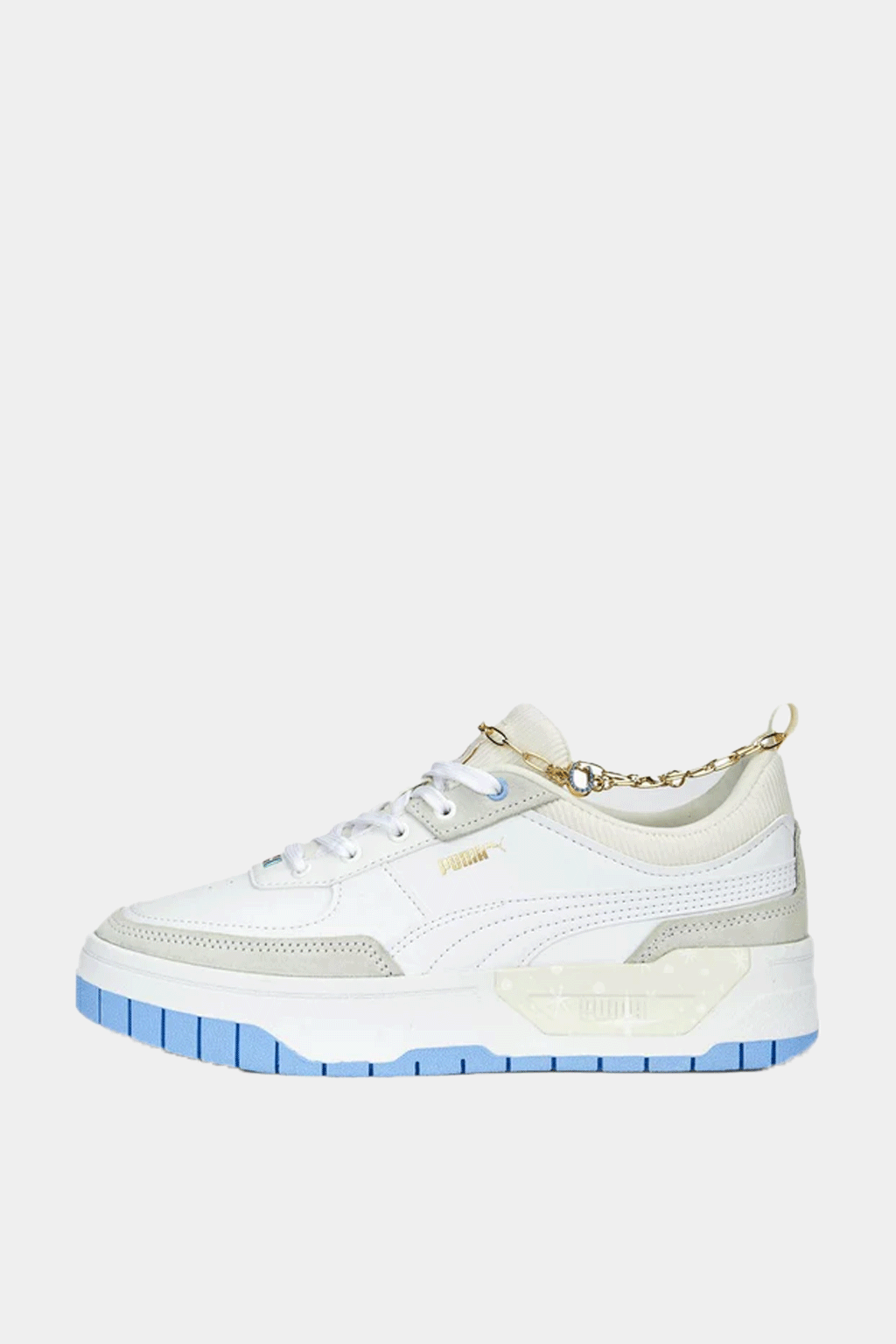 Step into style and confidence with the PUMA Cali Dream 'Lucky Charm' sneakers ‚ a bold and feminine take on a streetwear classic. Featuring a premium leather upper, soft pastel color accents, and elevated platform sole, these shoes deliver both charm and edge. Perfect for fashion-forward individuals, the Cali Dream blends laid-back California vibes with modern details and all-day comfort. Complete with gold-tone embellishments and the iconic PUMA Formstrip, this sneaker adds a touch of luck and luxury to every step.