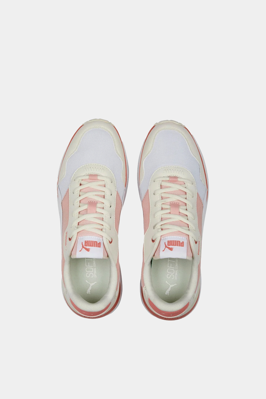The PUMA R78 Voyage, dubbed"Rose Dust White Pristine," blends retro running vibes with elevated style. It showcases layered nylon and synthetic leather panels atop a raised EVA midsole‚ its swooping lines and textured overlays convey depth and movement. Subtle pops of rose dust pink on the heel, midsole insert, and branding balance beautifully against a crisp white canvas. Designed for women, it brings a sleek yet sporty aesthetic.