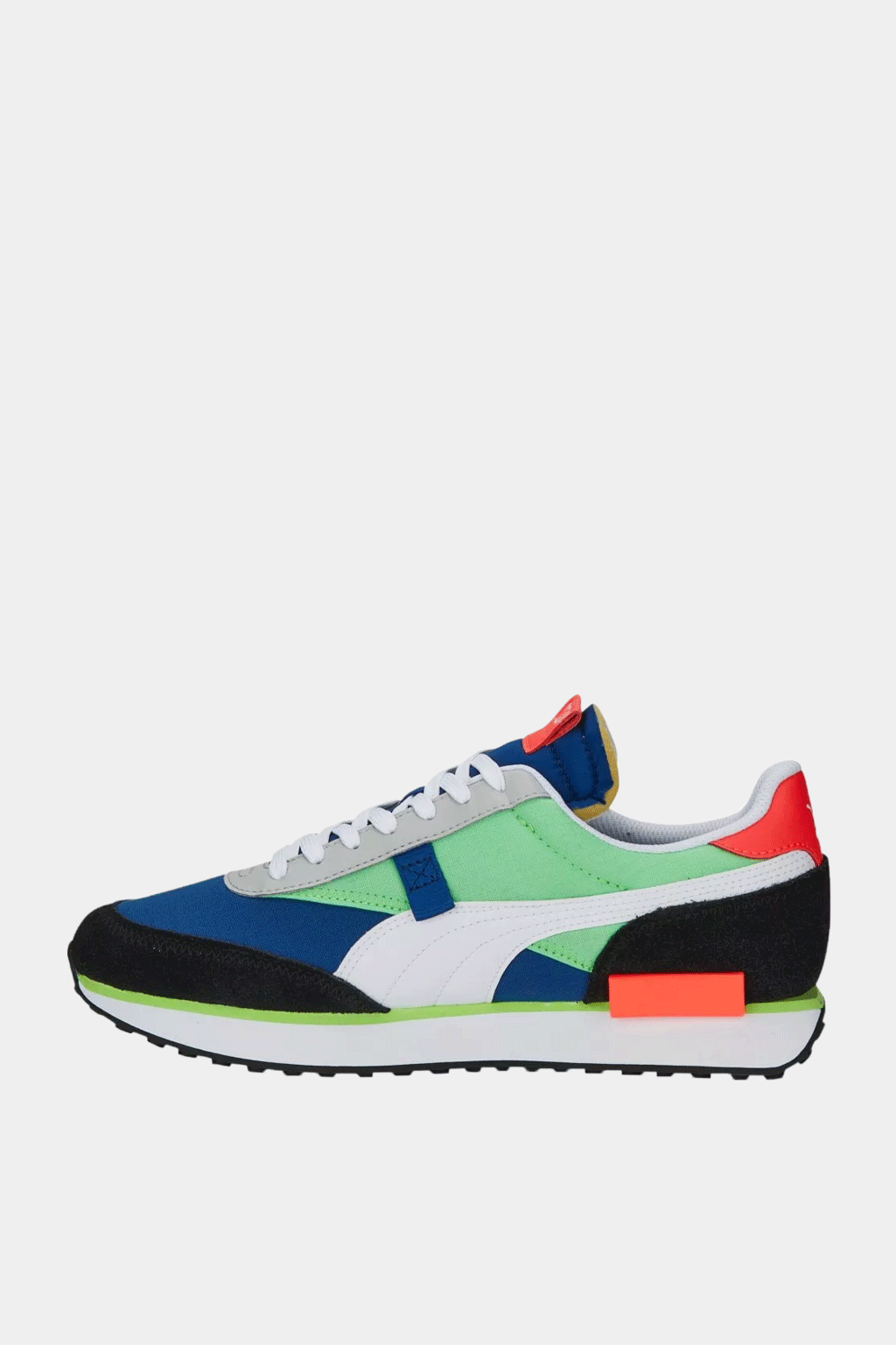 Keep the energy alive with the PUMA Rider Play On Trainers‚ the iconic silhouette that started a movement. Inspired by the original Fast Rider from the 1980s, this updated version fuses retro design with modern materials for a look that's both timeless and trend-forward. The upper combines ultra-light nylon with suede and leather overlays, delivering breathable comfort and durable support. Underfoot, the shock-absorbing Federbein outsole offers traction and impact protection, while the streamlined shape and bold colorways make this sneaker a standout on the street. Whether you're pounding the pavement or leveling up your casual look, the Rider Play On keeps your game going strong.