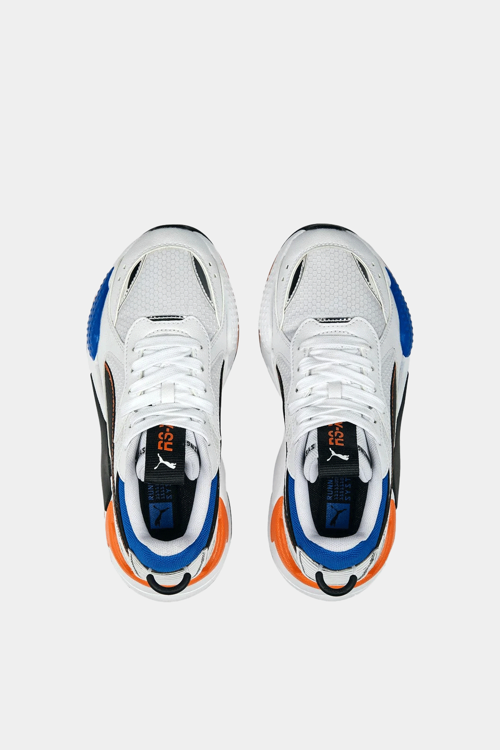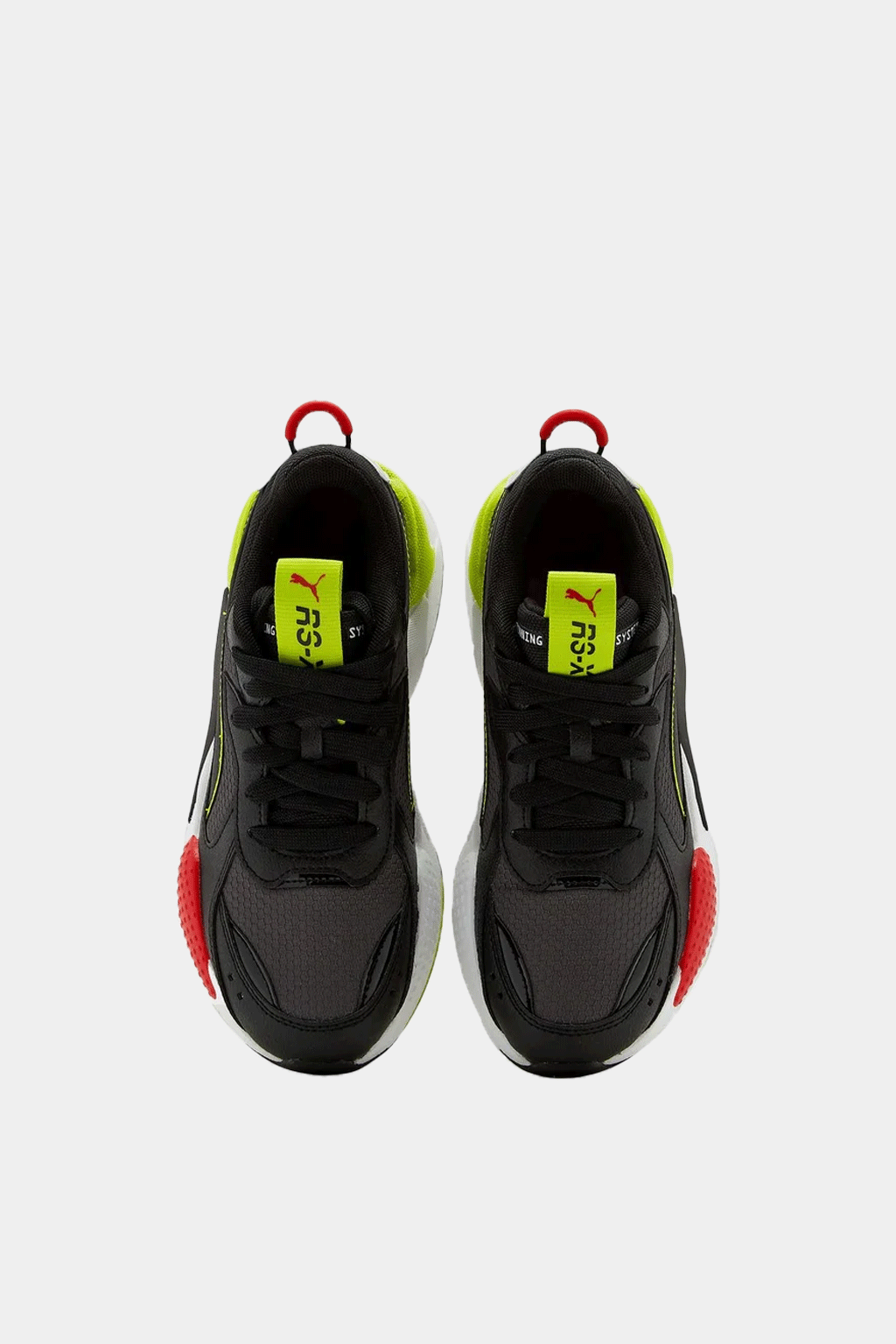 The PUMA RS-X EOS JR blends retro-futuristic aesthetics with modern performance. Built with a breathable mesh upper, durable suede and synthetic overlays, and RS cushioning, it delivers maximum comfort and standout style for young trendsetters. A chunky sole and dynamic colorway complete the look for all-day wear and confidence.