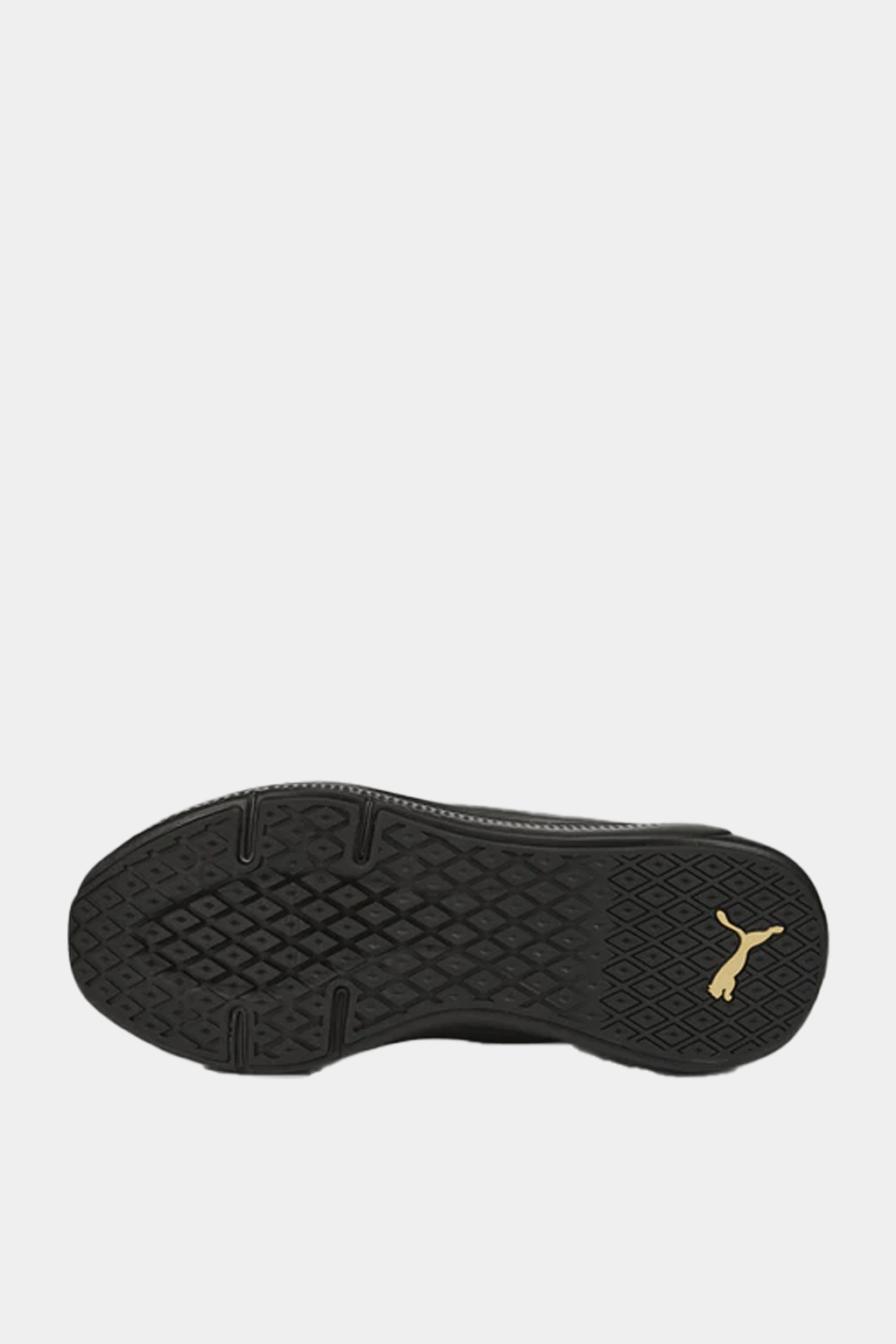 The PUMA Softride Pro Metallic WNS combines sleek athleticism with modern flair. A streamlined mesh upper in deep black is accented by metallic gold PUMA branding and a muted midsole fade effect‚ perfect for both training and casual wear. Its sculpted silhouette and reflective details offer a refined, on trend aesthetic.