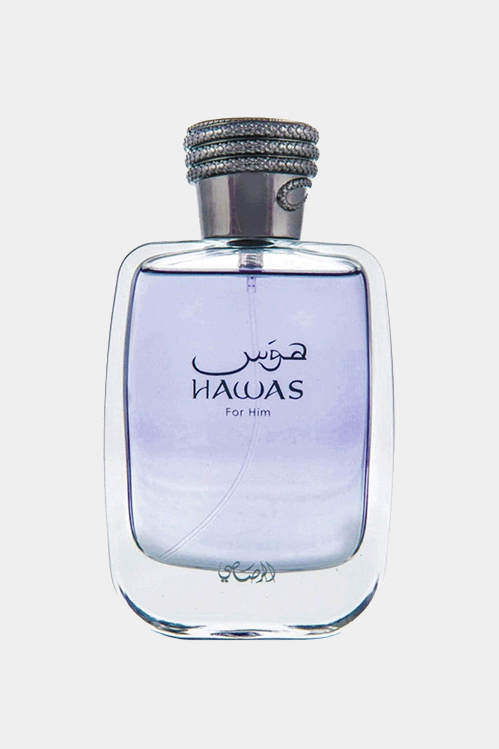 Hawas for Him is an aquatic, woody fragrance with cinnamon, bergamot, sandalwood, and fresh citrus, embodying the modern man‚ as strength and adventure, with a bold python-themed bottle.