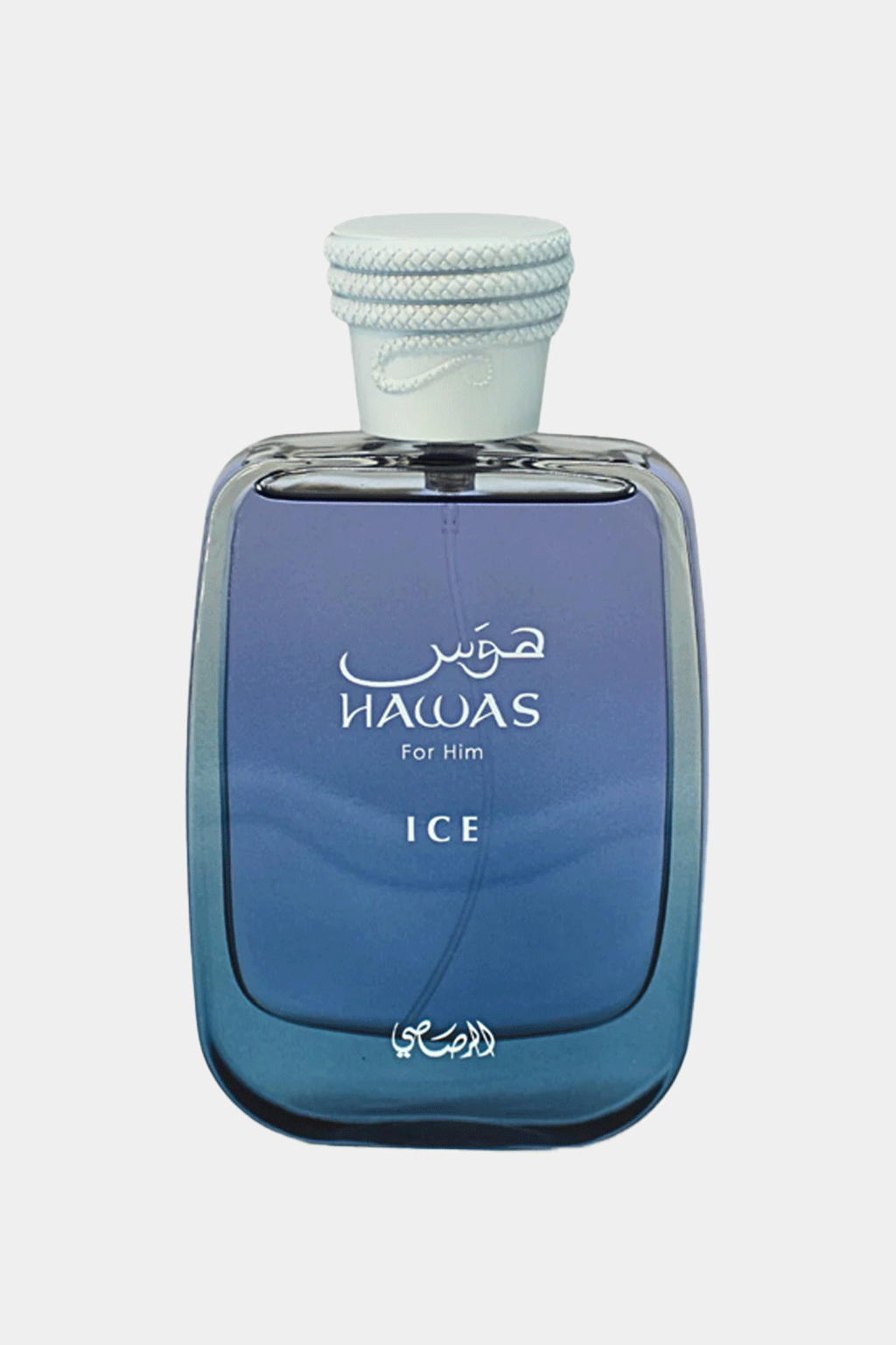 Rasasi Hawas Ice For Him EDP is an aromatic, woody fragrance with citrus top notes, a heart of floral and fruity notes, and a warm base of patchouli, sandalwood, amber, and tonka beans.