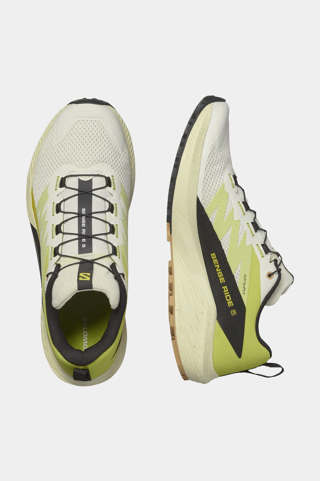 The Salomon Sense Ride 5 is an incredibly versatile and capable trail running shoe, engineered for runners who demand all-terrain performance from short, fast trails to ultra distances. This shoe seamlessly blends the best of both worlds, offering balanced cushioning that is soft enough for comfort yet responsive enough for a fast turnover, thanks to its Energy Foam midsole. Its reliable grip is delivered by the All Terrain Contagrip outsole, ensuring secure footing on a wide variety of surfaces, from wet rocks to loose scree. Designed with a precise fit and an engineered mesh upper for secure foot-hold and optimal breathability, the Sense Ride 5 is the go-to companion for exploring any trail, providing the perfect balance of cushion, responsiveness, and protection for your daily trail adventures.