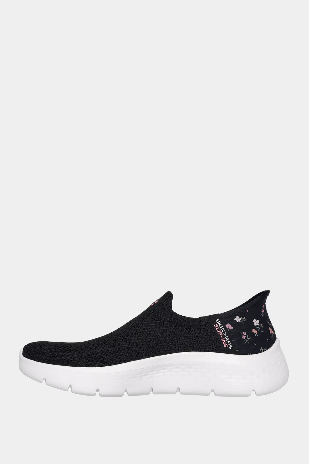 Step into effortless style and flexible comfort with the Skechers Hands Free Slip-ins GO WALK Flex.¬¨‚ †This vegan-friendly slip-on features a breathable knit mesh upper with a charming floral print heel, a molded Heel Pillow for secure fit, an Air-Cooled Memory Foam insole, ULTRA GO cushioning, and Flex Pillars for natural movement and support.
