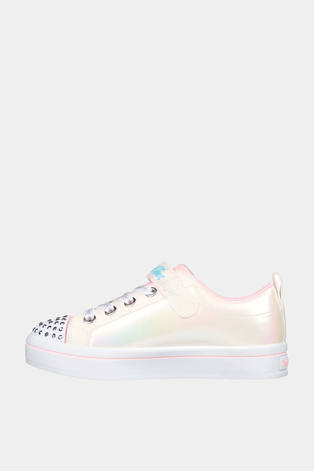 Sparkle, shine, and light up every step in the Twi-Lites 2.0 – Wingsical Dreams. This fun sneaker features a synthetic iridescent upper with glitter trim, stretch laces, and an adjustable instep strap for a secure fit. The signature light-up wing detail and embellished toe add extra magic, making it a must-have for kids who love to stand out.