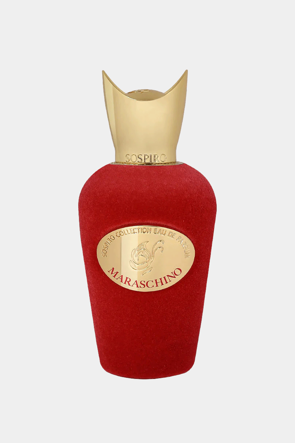 Sospiro's Maraschino Eau De Parfum is a luxurious unisex Floral Fruity fragrance. Featuring luscious cherry, peach, and almond, it opens playfully yet elegantly, leading to a floral heart and a warm, creamy base for lasting sophistication.