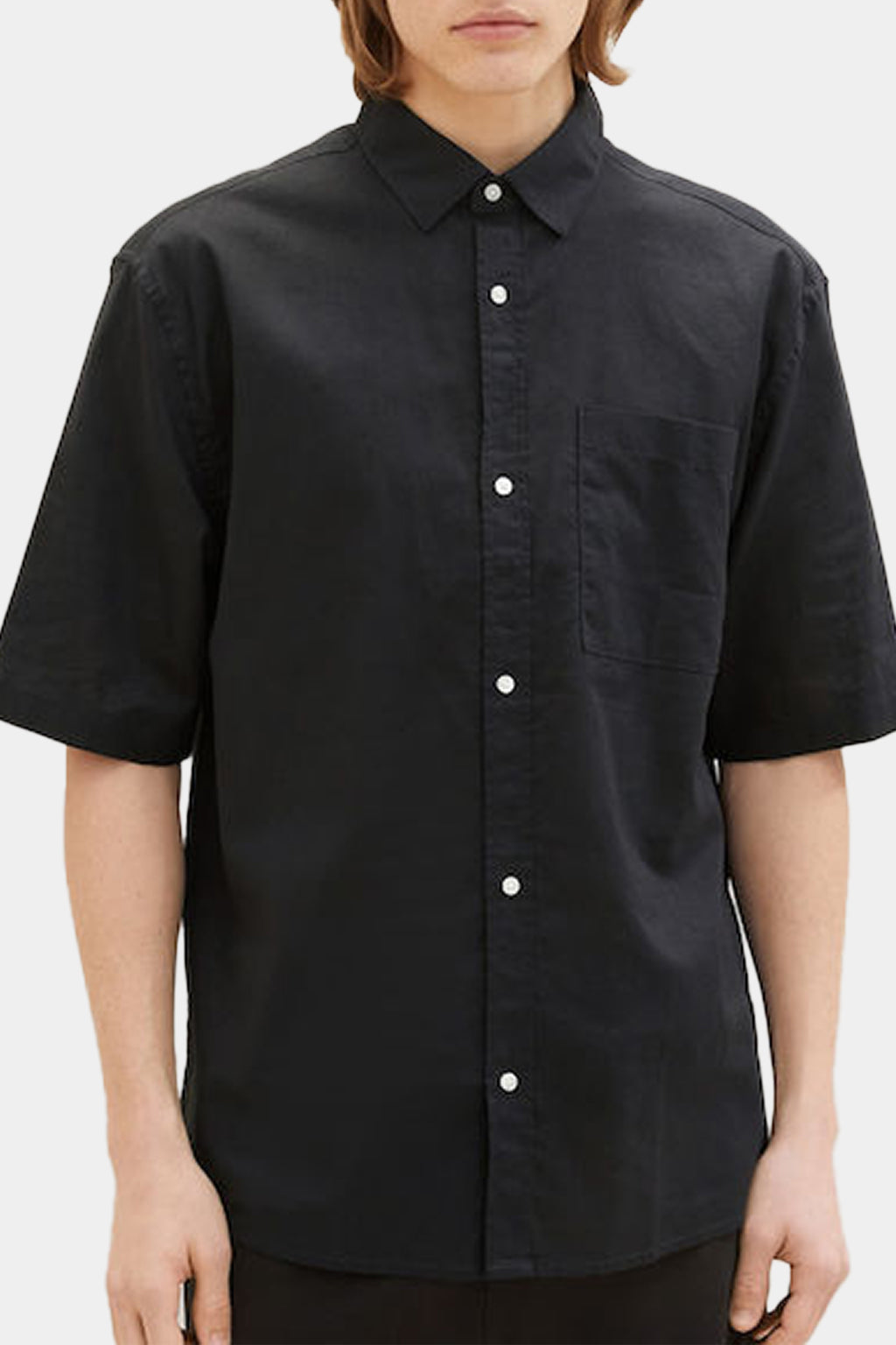 This Tom Tailor Men's Shirt in classic black features short sleeves for a modern and versatile look. Expertly crafted with quality materials, this shirt offers both style and comfort for any occasion. Upgrade your wardrobe with this essential piece from Tom Tailor.