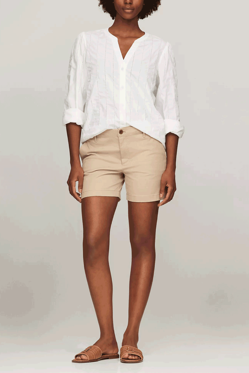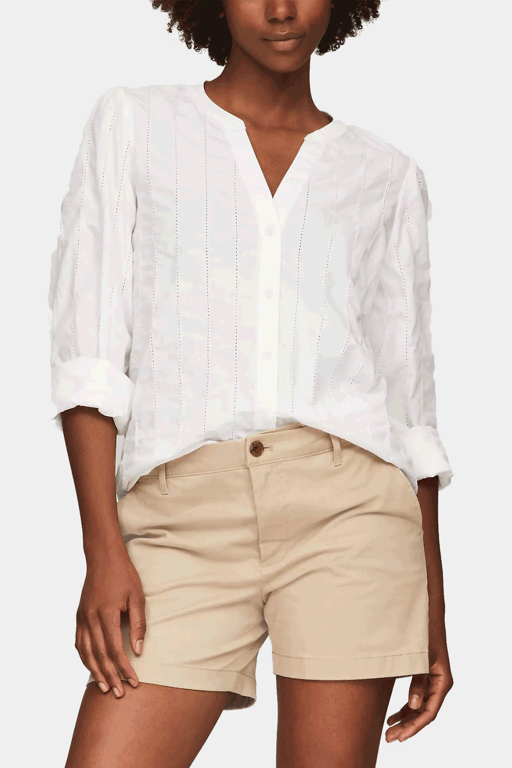 Upgrade your wardrobe with the Tommy Hilfiger Ladder Lace Shirt. This elegant, collarless shirt features blouson sleeves and intricate ladder lace detailing, offering a chic and timeless silhouette. Made from premium cotton, it's perfect for both casual and formal occasions. Pair it with your favorite jeans or a sleek skirt for a versatile, sophisticated look. Embrace effortless style with Tommy Hilfiger's signature quality.