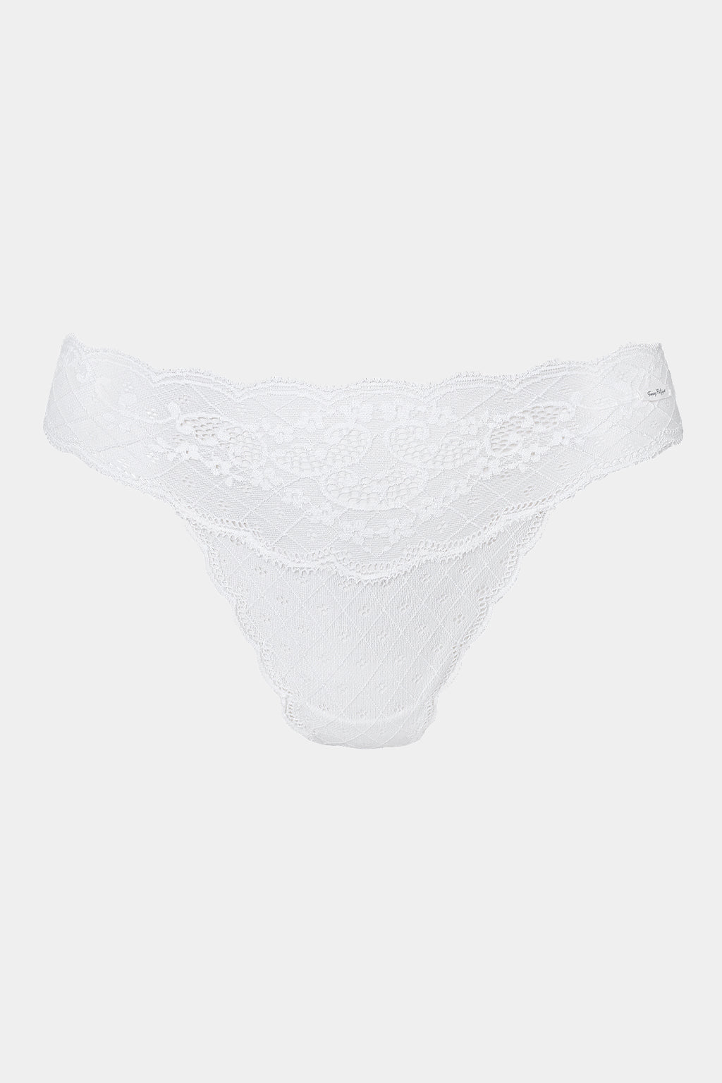 Upgrade your lingerie collection with the ultra-feminine Tommy Prairie Lace Brazilian Brief! This flirty panty has a low-rise waist, cheeky cut rear and high-cut legs to make your curves look amazing. The semi-sheer lace offers a timeless look for a touch of romance.