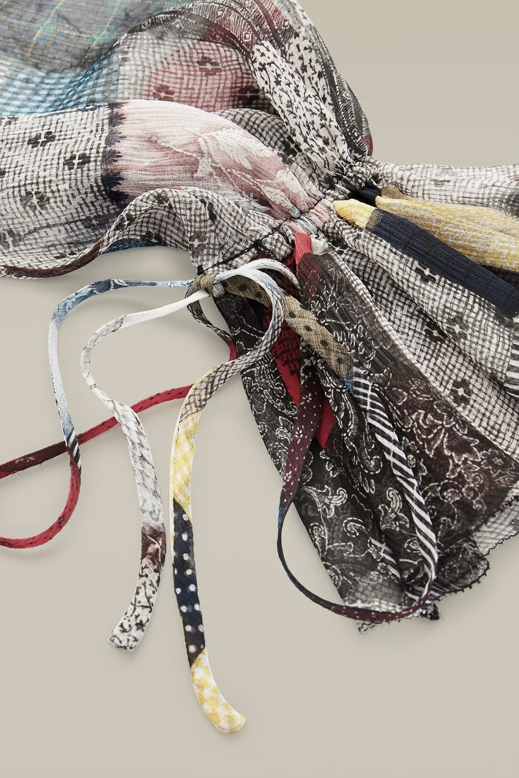 Make a bold statement in this Tommy Hilfiger Pure Silk blouse that features an intricate patchwork print. Exquisitely crafted with delicate silk fabric, this piece is sure to become your go-to choice for special occasions while adding a luxe touch to your wardrobe. Elevate your style game!