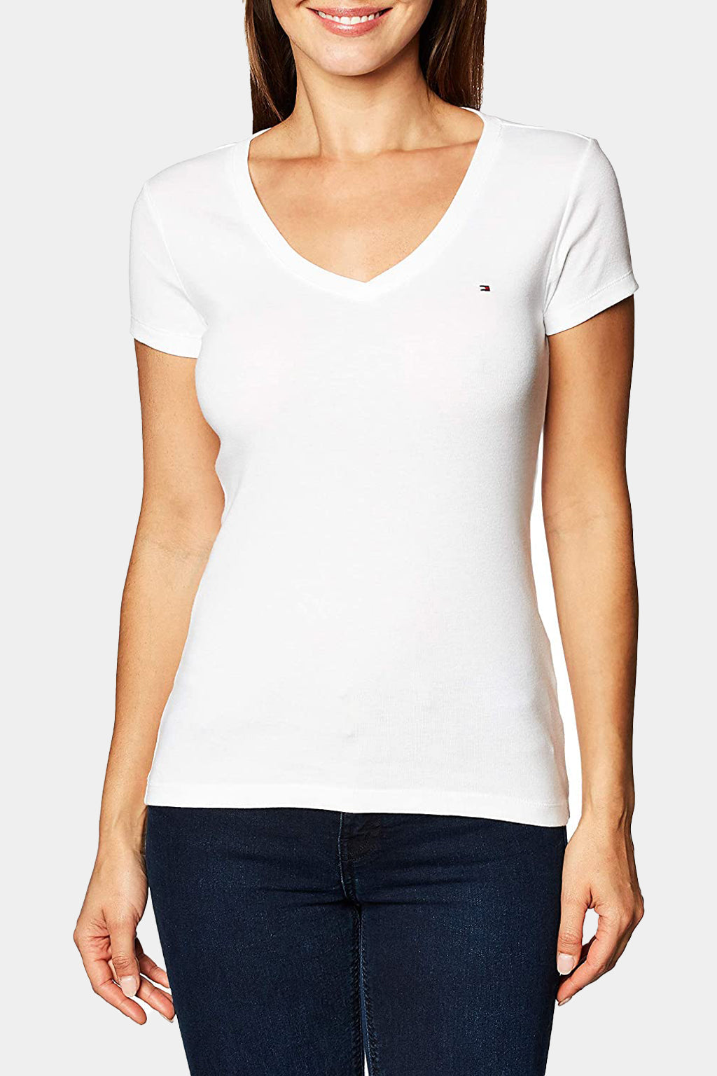 Tommy Hilfiger's short sleeve women's t-shirt is perfect for the summer, with a v-neckline and cotton construction. This women's t-shirt is the perfect partner for your lifestyle, whether you're taking it easy on a balmy day or hitting the town.