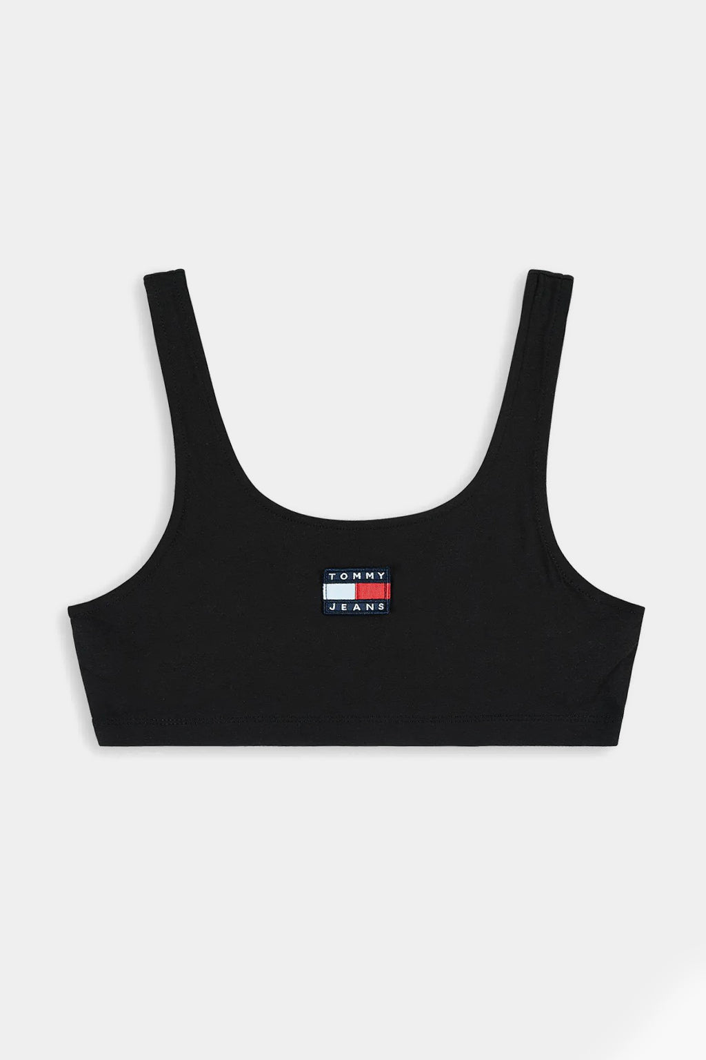 This Tommy Hilfiger top is made from 100% certified organic cotton, sourced from farms that follow strict rules to not impact negatively on the environment. The garment has a short cropped cut, with a seam reinforced bottom. There is an embroidered logo patch on the front.