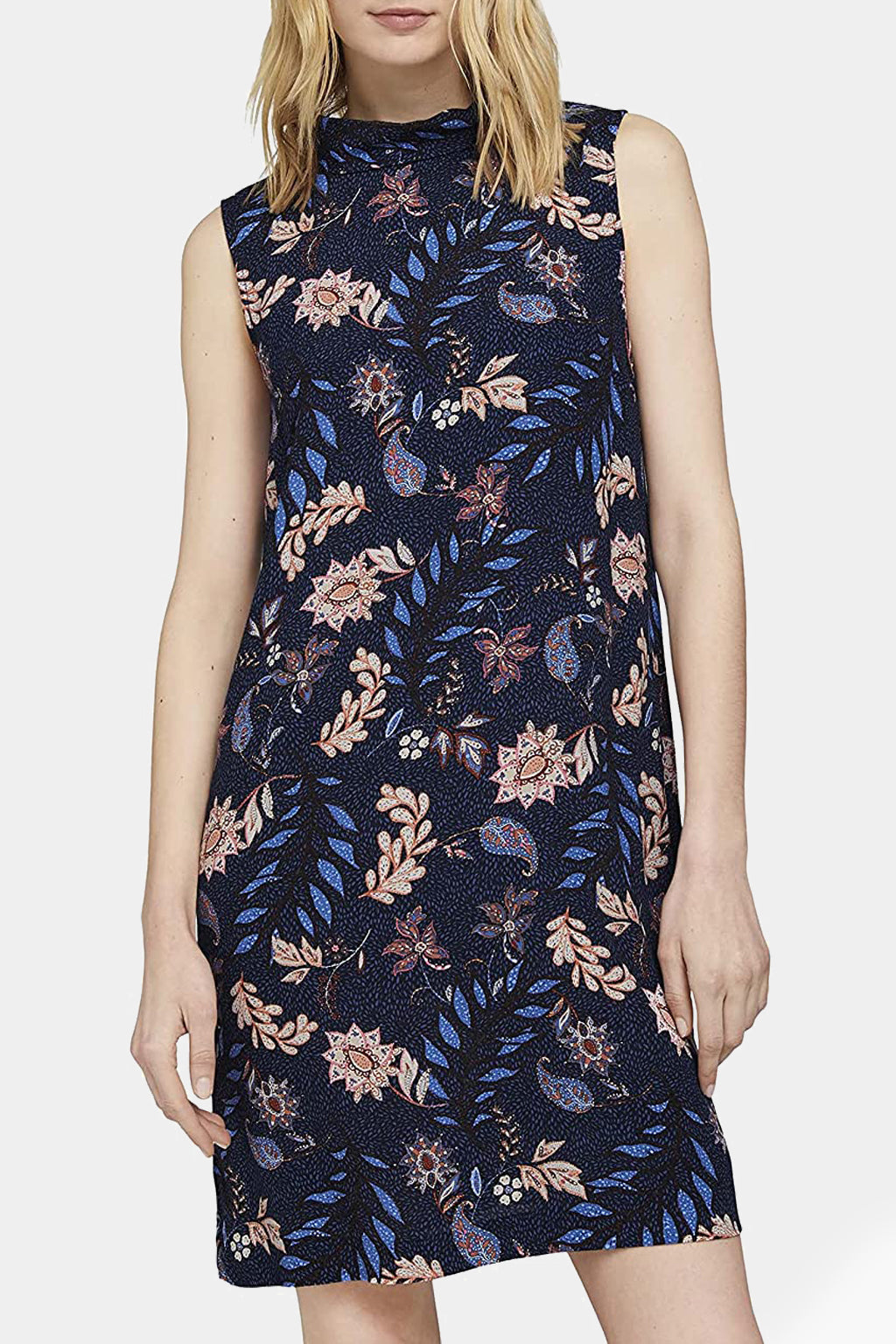 Tom Tailor Women's Sleeveless Dress ‚ ì Viscose is a smooth, lustrous fibre that exhibits lustre when woven or knitted. With just the right amount of stretch, this fabric naturally maintains its shape and drapes beautifully across the figure. Whether you want to cuddle with a nice book on the sofa or go for a romantic dinner in the city, this is one of those essentials that never get old in your closet. A dress made for any occasion ‚ ì just add your favorite shoes and accessories!