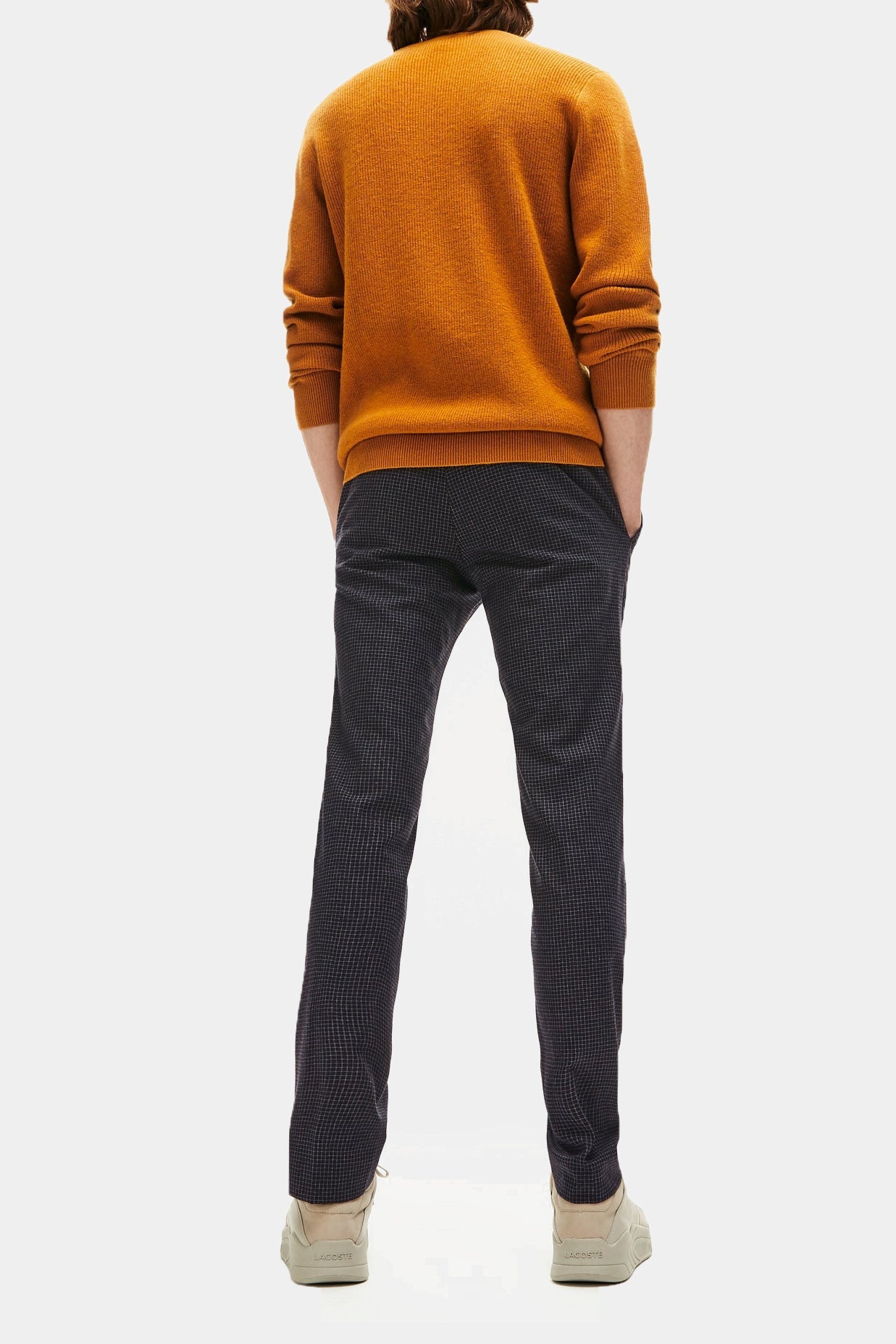 Lacoste men's 85. Fashion category: pants & leggings. Color: black/multicolor. Lacoste wool blend slim fit check chino pants. Stretch wool and cotton blend flannel pants featuring a slim fit, embroidered tone-on-tone crocodile branding, adjustable waistband with metal buckles and hook and zip fly, slant pockets, ticket pocket and back pockets, including one buttoned telephone pocket.